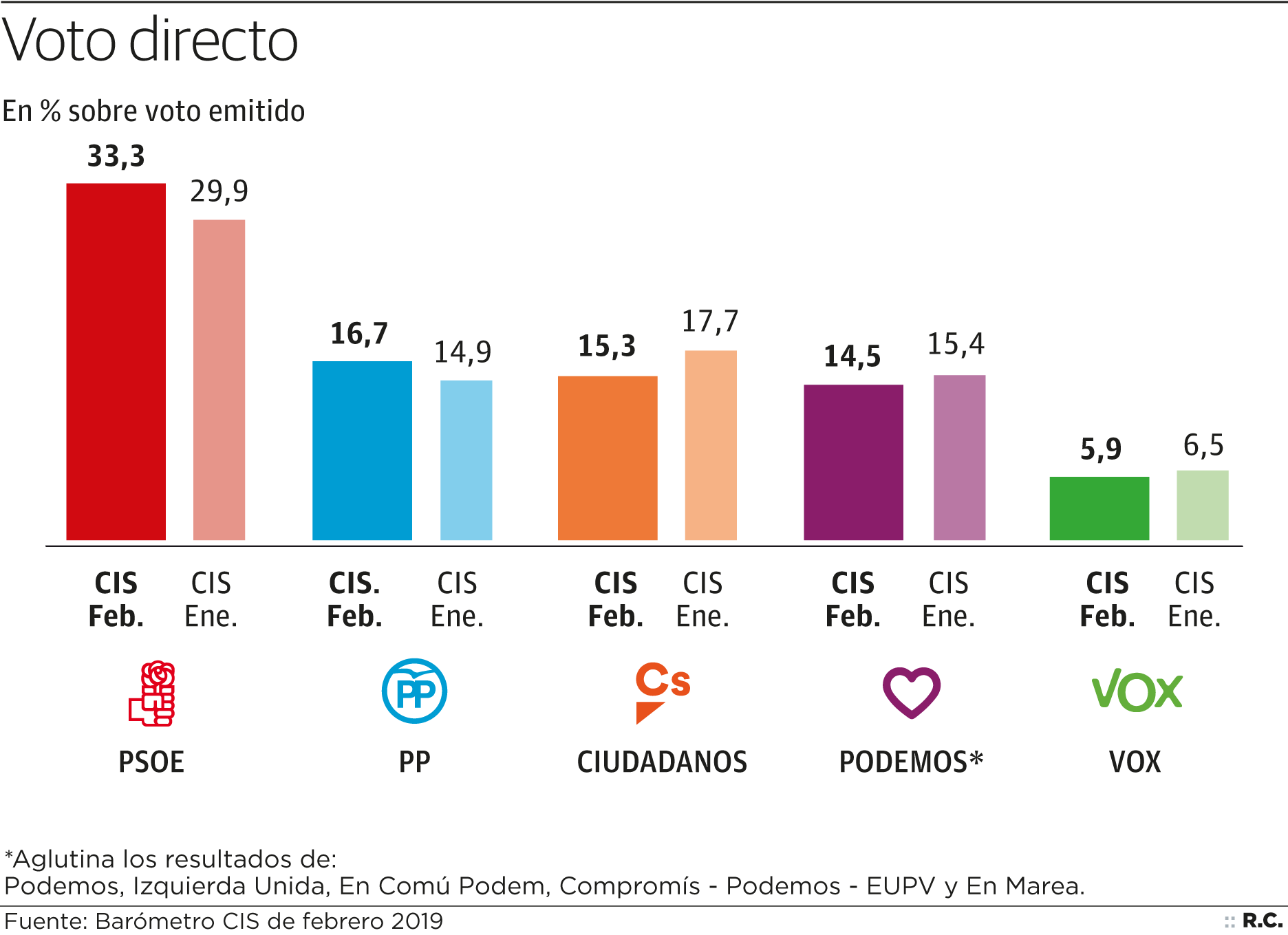 El barómetro fue elaborado entre el 1 y 10 de febrero, o sea antes del rechazo del Congreso a los Presupuestos y también antes de que Sánchez anunciara el adelanto electoral