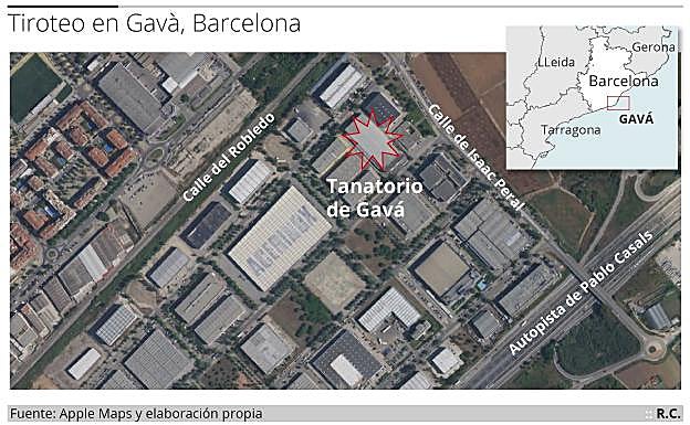 Los hechos han ocurrido cerca de este tanatorio, en el paseo Ferrocarril de Gavà, desde donde el agresor ha huido del lugar en un Alfa Romeo verde y los Mossos d'Esquadra. La Policía Local activó un dispositivo de búsqueda para dar con él. Fue detenido después de haberse atrincherado en una casa de la urbanización Muntabya de la localidad de Canyelles.