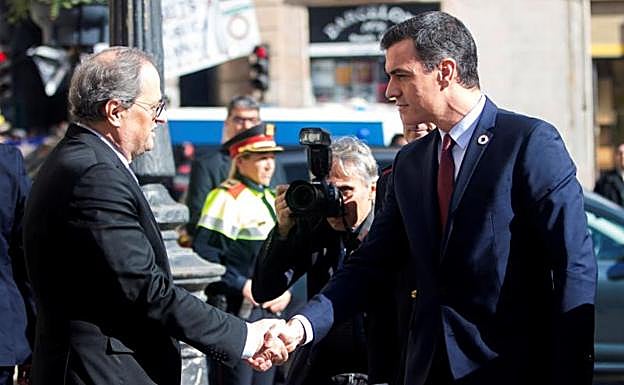 Pedro Sánchez salió este jueves satisfecho, casi ufano, de su cita con Quim Torra en el Palau de la Generalitat. «Hoy es el día en ... el que, a juicio del Gobierno de España -proclamó-, tiene que comenzar el diálogo para el reencuentro». Los prolegómenos de la reunión no resultaban del todo alentadores. En los últimos días, el presidente catalán había dejado claro que mantendría alto el listón de sus exigencias -derecho de autodeterminación y amnistía para los condenados del 'procés'- y en Esquerra Republicana de Catalunya llegaron a temer que aprovechara la ocasión para reventar la mesa de negociación que ellos pactaron a cambio de la investidura del líder socialista. Creían que podía tratar de dejarlos en evidencia ante un electorado por el que ambos compiten. Pero no fue así.