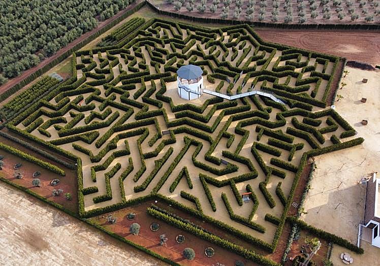 Además, incluye en su interior diversas pruebas de ingenio, sumando a la solemnidad y belleza del laberinto un concepto similar a los 'escapes rooms'. «No consiste solamente en llegar a su centro y salir, sino que además esta tematizado. Tiene un juego en su interior que consiste en buscar diversos elementos e ir respondiendo una serie de preguntas hasta resolver un acertijo«, matiza Rafael.