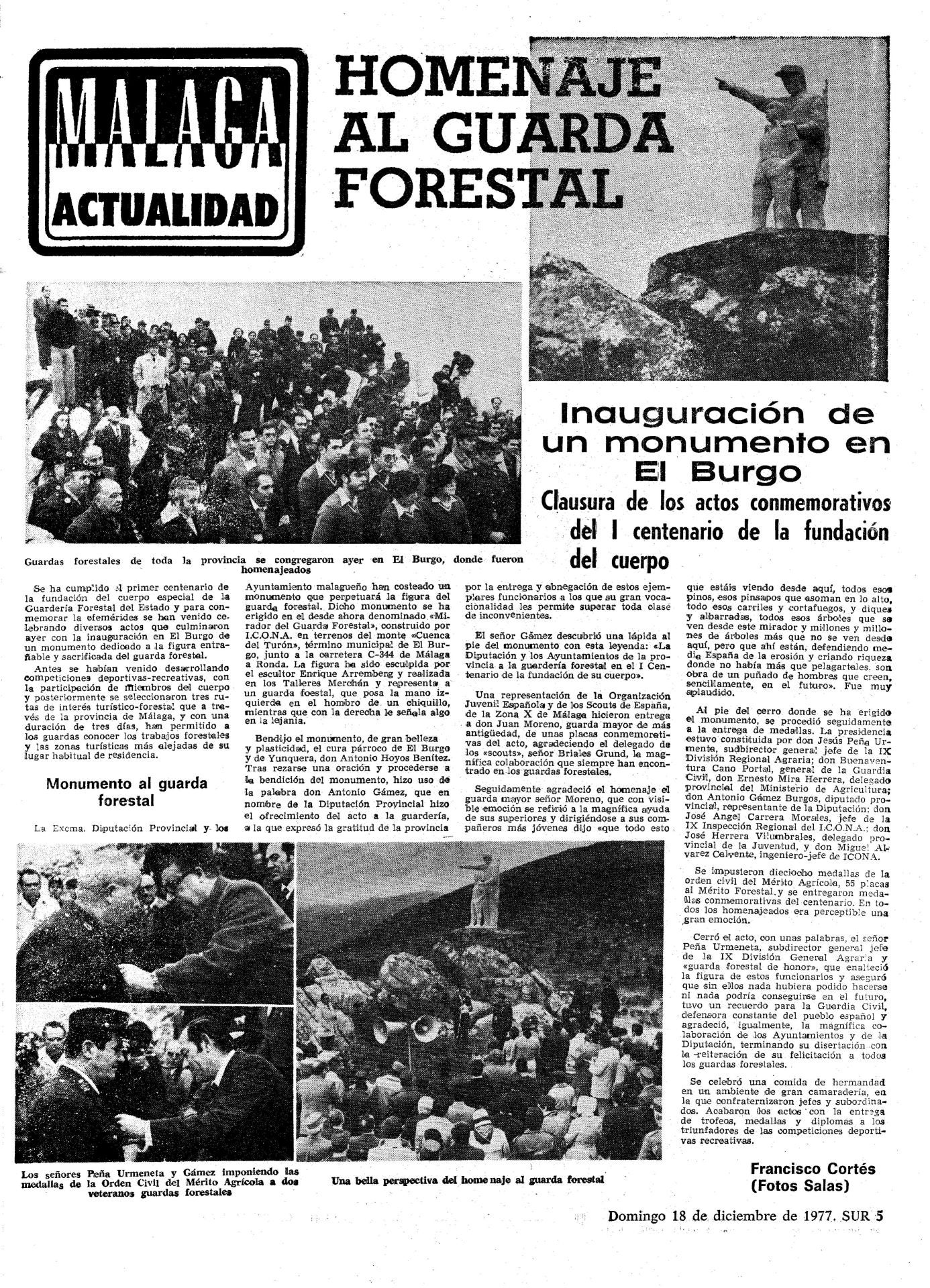 Es mucho más que un balcón natural desde el que contemplar valles y montañas de la Sierra de las Nieves. Es un lugar que invita ... a reflexionar sobre la importancia de una profesión esencial para los bosques andaluces. El Mirador del Guarda Forestal, inaugurado a finales de 1977, se levantó para homenajear a quienes dedicaron su vida a proteger los montes de Málaga.