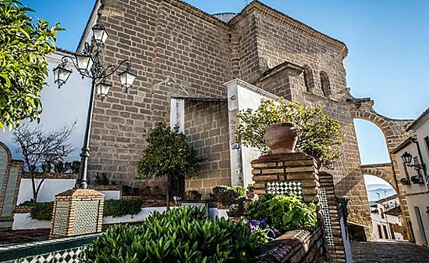 El plano del pueblo se extiende sobre una loma, callejuelas serpenteantes repletas de fachadas blancas y macetas azules discurren hasta el punto más alto del pueblo, culminado por el castillo árabe y la iglesia de Santiago Apóstol.