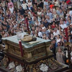 De la calle Trinidad partió el Santo Traslado y la Virgen de la Soledad de San Pablo, que exhibió su trono restaurado. Como ocurrió con la Piedad, también hubo saetas a la salida de los titulares trinitarios. Y sonó 'Mater Mea' para la Dolorosa de Pedro Moreira. Sin duda, una delicia, como igualmente lo fue ver a los dos titulares atravesando el Puente de la Aurora a la ida, aún con la luz de la tarde.