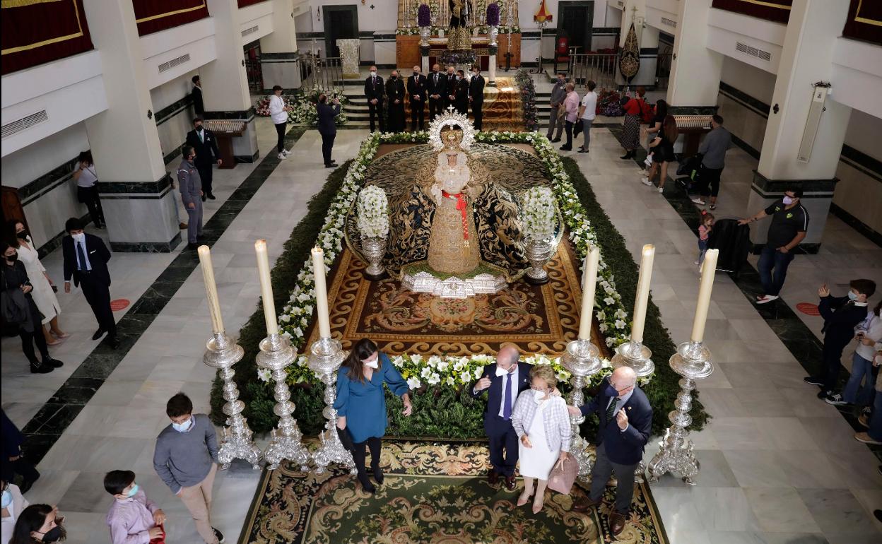Los sagrados titulares llenan los ojos con su imponente estampa. El Dulce Nombre de Jesús Nazareno del Paso, en la peana de la Dolorosa situada sobre un monte de corcho en el altar mayor, luce la túnica bordada en los talleres de Salvador Oliver con diseño de Eloy Téllez y la cruz de plata, mientras que la Virgen de la Esperanza lleva hoy sobre sus sienes la presea de coronación y luce su juego de joyas clásicas; el exorno floral son las clásicas orquídeas blancas que lleva en su trono en la salida procesional del Jueves Santo.