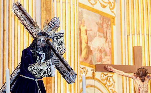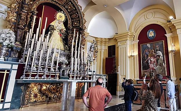 Esta Semana Santa sin procesiones está sirviendo para sacar a la luz costumbres desconocidas por muchos pero que ponen de relieve la devoción y el arraigo popular que suscitan muchas de las imágenes que recorren las calles de la ciudad cada primavera. Es el caso de los titulares de la Archicofradía de la Sangre, cuya junta de gobierno ha decidido desarrollar en su veneración en la parroquia de San Felipe Neri una iniciativa que hasta ahora quedaba limitada al ámbito de los 'submarinos' de ambos tronos, compuestos por los portadores que los llevan bajo la mesa. Se trata de recabar papeles con peticiones de personas que se colocan en unas pequeñas arcas de madera en los tronos y que, una vez que pasa la salida procesional, se queman para que siempre quede en secreto ese diálogo por escrito del devoto con el Cristo de la Sangre y la Virgen de Consolación y Lágrimas. «Pensamos que este año era una buena ocasión para ofrecer a las miles de personas que están pasando por la iglesia la posibilidad de que dejen sus rezos y peticiones ante las imágenes, y hemos colocado unas cajas de madera a sus pies para que puedan depositar los papelitos doblados», explica Laura Berrocal, hermana mayor de la Sangre. La iniciativa, especialmente promovida por el submarino de la Virgen, denominado 'La Naveta', ha tenido tal éxito que el restaurador y pintor Francisco Naranjo ha diseñado un arca de orfebrería en la que, en años venideros, se recopilarán todas las peticiones por escrito y que figurará en el frontal del trono de la Dolorosa.