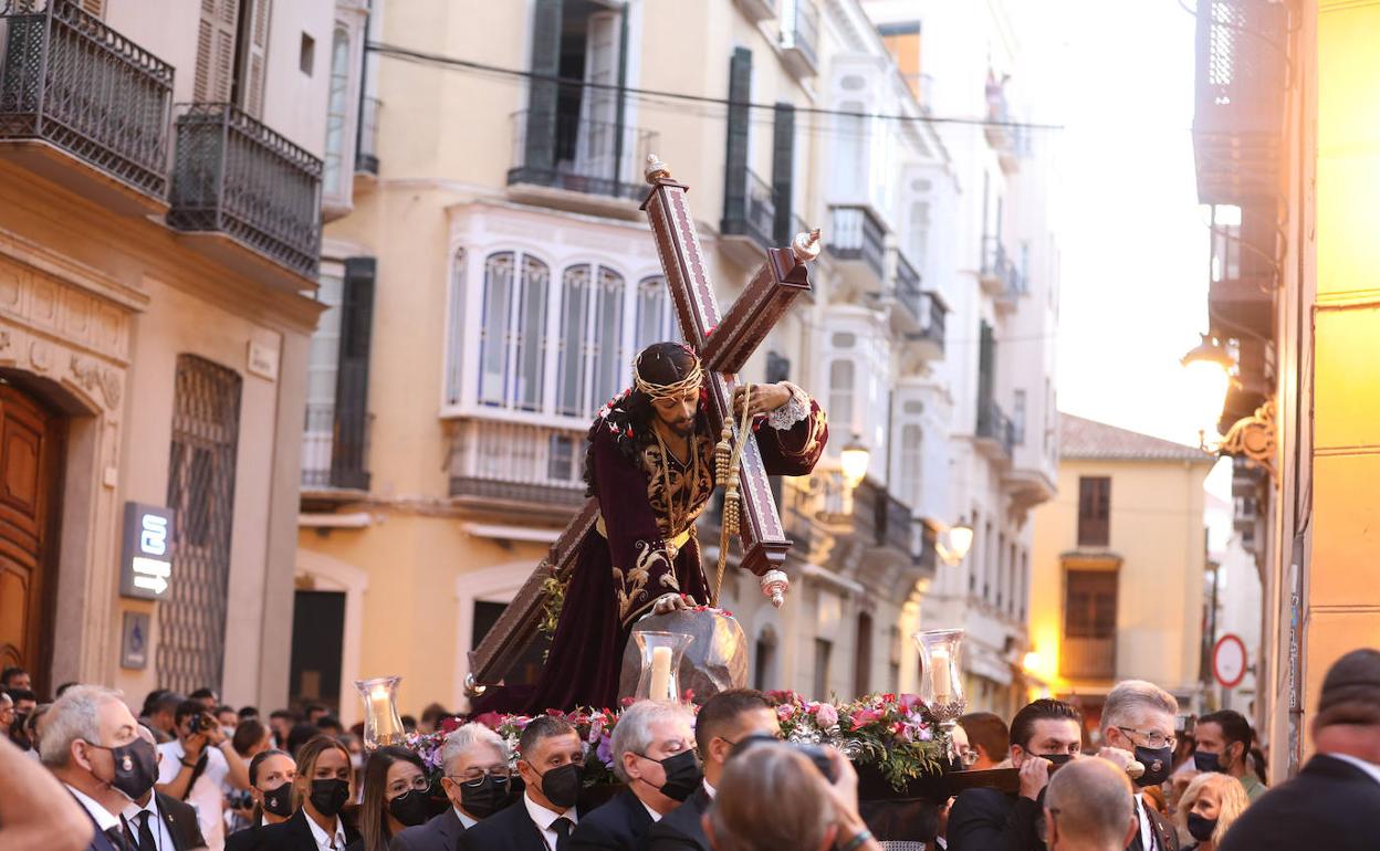 Según ha podido conocer este periódico, Jiménez ha ideado para esta popular imagen de Jesús caído con la cruz a cuestas una escena en la que está rodeado por las figuras de las ánimas del purgatorio, una representación del arte religioso en la que aparecen personas que empiezan a ser devoradas por las llamas del infierno e imploran la misericordia de Dios para su salvación. De este modo, Jiménez ha querido vincular la devoción a este Cristo con la iglesia del Carmen en la que recibe culto todo el año (la Virgen del Carmen también está muy ligada a las ánimas) y con la historia de su cofradía, que también tiene como titular al Santísimo Cristo de Ánimas.
