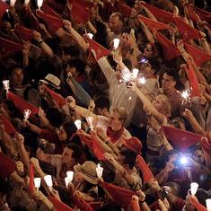El tradicional cántico del público asistente, pañuelo rojo al aire e iluminados por velas, de Ya falta menos y una traca de fuegos artificiales ha puesto punto y final a unas fiestas que ya comenzaron con polémica cuando el alcalde ordenó colocar la ikurriña en el balcón principal. Esta acción, al igual que la del Pobre de Mí, no sentó bien a una buena parte de la población y Asirón ya tuvo que escuchar pitidos durante la Procesión de San Fermín el pasado 7 de julio.