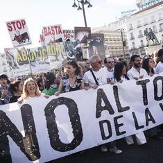 Miles de personas se han manifestado este sábado en la Puerta del Sol de Madrid para mostrar su rechazo al tradicional festejo de Tordesillas conocido ... como el Toro de la Vega, convocadas por el Partido Animalista PACMA.