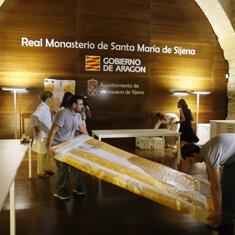 Los técnicos de Patrimonio trabajan para desembalar las piezas, elaborar un listado y comprobar su estado, así como que corresponden a las piezas aragonesas. Esta información se incluirá en un informe y se trasladará a los servicios jurídicos del Gobierno de Aragón.