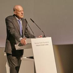 Foster también ha alertado de que catástrofes recientes como el Katrina o el huracán Sandy son sólo los "primeros síntomas" del cambio climático, otro de los grandes retos, y ha recordado que ya en sus primeros días de estudiante, hace más de seis décadas, él hablaba y defendía la "arquitectura verde".