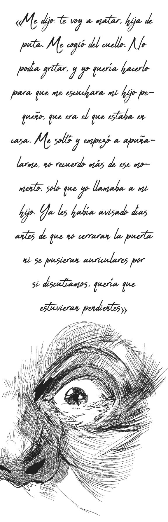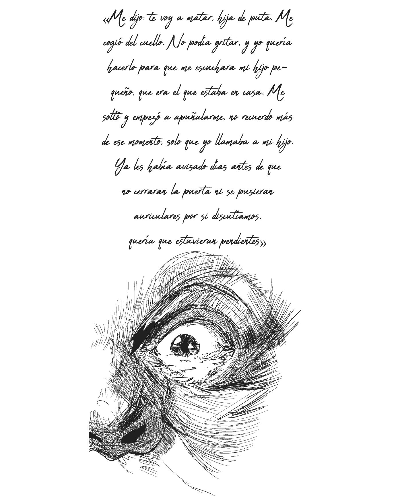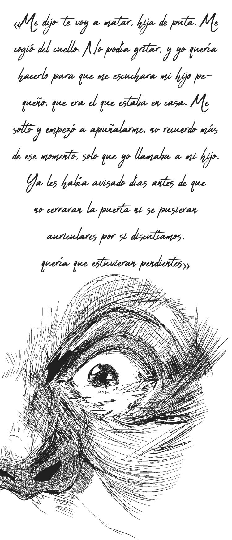 Ana recibió ocho puñaladas y una paliza mientras estaba en el suelo. Tenía un edema pulmonar, una costilla rota, la laringe afectada, una infección, hematomas y rajas por todo el cuerpo. Su pronóstico era grave. Y, sobre todo, sentía «rabia y dolor por su hijo».
