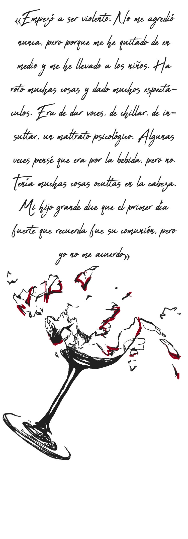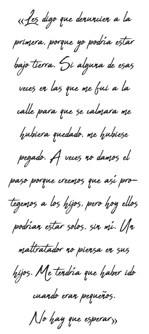 Ana respira hondo y aprieta fuerte las manos de sus hijos. Entre ellos se secan las lágrimas -están demasiado acostumbrados a hacerlo- y se levantan. Caminan de vuelta a casa, ese lugar donde vivieron un infierno y en el que ahora tratan de encontrar, a duras penas, la felicidad.