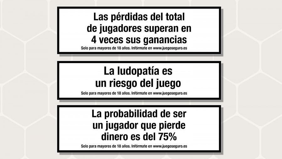 Estos tres mensajes aparecerán en las casas de apuestas y en los portales de juego en línea, así como en su publicidad online. «Se presentarán de manera accesible y fácilmente legible», ha manifestado el ministro, que ha añadido que la adicción al juego «entraña todo un abanico de riesgos que son igual de importantes que las consecuencias para la salud que pueden tener, por ejemplo, el tabaco o el alcohol».