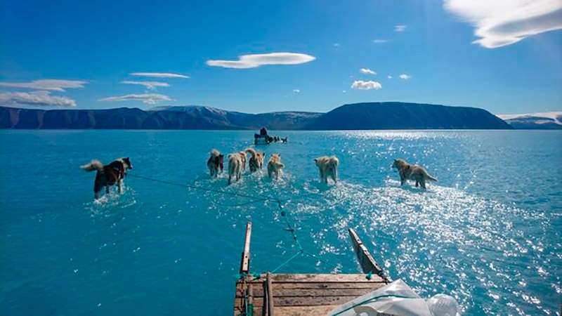 Una imagen impresionante en un día demasiado caluroso sobre el mar congelado de Groenlandia da la vuelta al mundo. El autor es el científico Steffen ... M. Olsen, que trabaja para el Instituto Meteorológico de Dinamarca. Muestra a ocho perros tirando de un trineo. En vez de hielo, lo que se ve, se asemeja mucho a una bañera gigante. Animales flotando sobre el agua. El científico decide publicar la foto en su cuenta de Twitter para alertar sobre los efectos del cambio climático. La imagen se viraliza y se erige como símbolo para las voces que llevan años alertando sobre este problema. El presidente del Gobierno, Pedro Sánchez, la difunde en sus redes sociales.