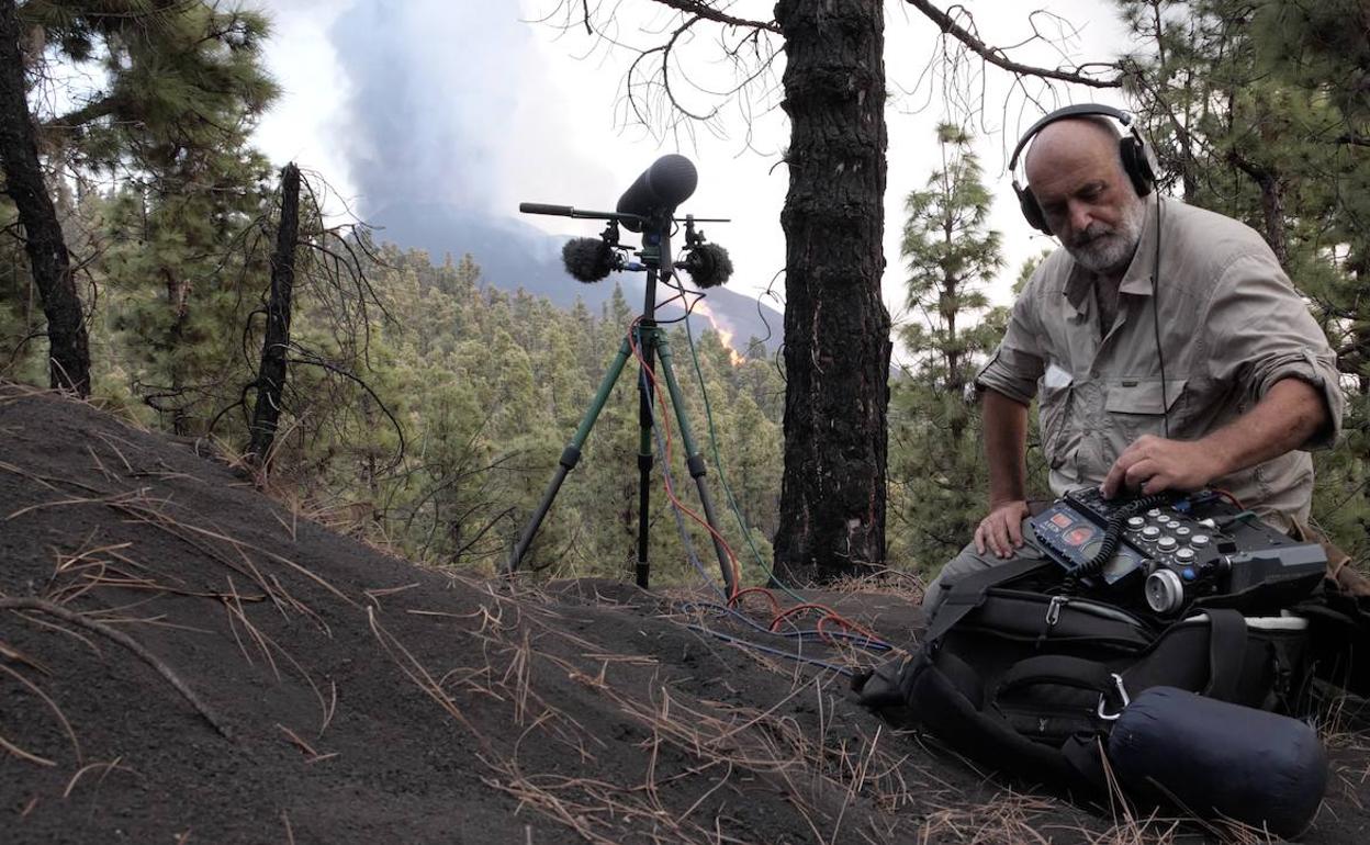 El naturalista Carlos de Hita (Madrid, 1959) lleva 36 años grabando los sonidos de la naturaleza, pero nunca hasta ahora se había atrevido a auscultar ... el estampido de «una fiera», como llama al volcán de La Palma. Llegó a la isla en barco de noche y quedó sobrecogido por el cielo incendiado de rojo. Pero más que el firmamento en llamas, lo que le impresionó fue la respiración del Cumbre Vieja, una especie de «exhalación, un suspiro muy profundo, como si un fuelle gigantesco» espirara el aliento del magma. ¿Cómo suena una erupción? De Hita asegura que un volcán se expresa con voces distintas. «Están el estruendo permanente, fruto de la emisión constante de piroclastos saliendo de las bocas eruptivas; el retumbo de los truenos y el crujido de la colada cuando arrastra grandes bloques de piedra», explica. Carlos de Hita es ganador de unos de los premios que concede la Sociedad Geográfica Española.