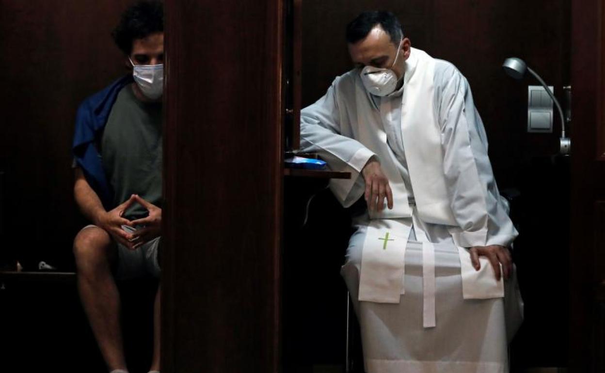 Un sacerdote administra la confesión en la Basílica de la Virgen de los Desamparados de Valencia. FOTO: Efe / VÍDEO: EP