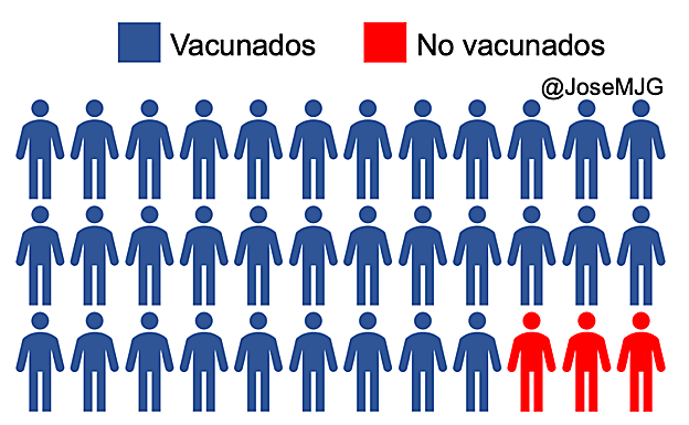 Esto realmente no es algo que nos pueda pillar por sorpresa. Al contrario, es lo esperable cuando la mayoría de la población de riesgo está vacunada. Solo hay que pensar que si el 100 % de la población estuviera vacunada, el 100 % de las hospitalizaciones sería de personas vacunadas.