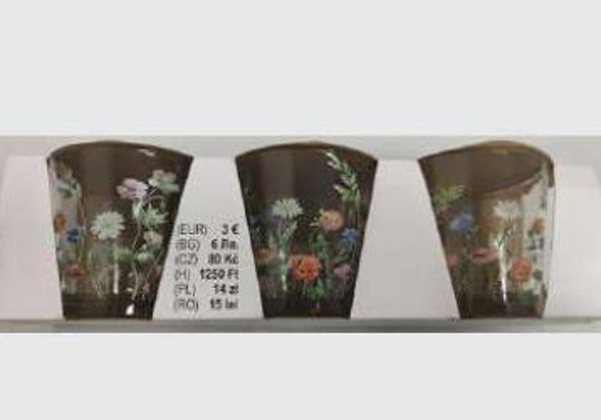 La cadena de tiendas Tedi ha retirado de la venta unos vasos con estampado de flores por contener en su composición «niveles elevados de plomo ... y cadmio».