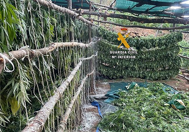 La zona de cultivo de la droga contaba con dos zonas principales totalmente estructuradas, en las que se había realizado la transformación del suelo mediante la tala y corte de la vegetación y especies arbustivas autóctonas existentes. Una de las partes era dedicada al cultivo en hilera de las plantas y la otra era utilizada para el proceso de secado de la marihuana, han detallado.