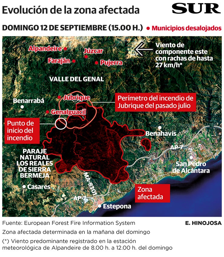 El dispositivo que trabaja en el incendio de Sierra Bermeja afronta un durísimo domingo, después de que las condiciones empeoraran esta pasada madrugada, con otro nuevo incendio ha obligado al desalojo de Jubrique y Genalguacil ... . En el quinto día de lucha contra el fuego, los centenares de profesionales desplegados en la zona trabajan ya al límite. Un total de 617 profesionales trabaja este domingo en tareas de extinción y protección a la población afectada por este gran incendio, que lleva más de 6.000 hectáreas afectadas.