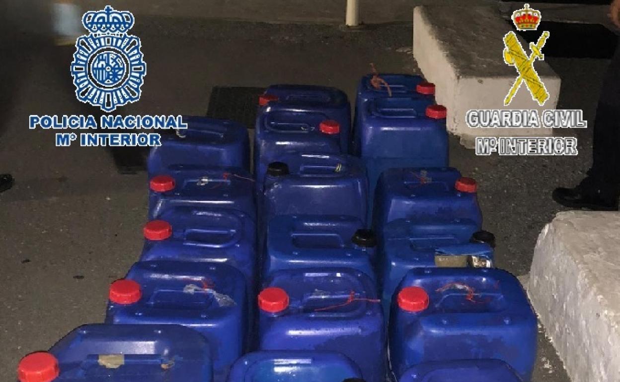 Una operación conjunta de Policía Nacional y Guardia Civil acaba con la desarticulación de una organización criminal que escondía 510 kilos de hachís en garrafas de combustible en una embarcación