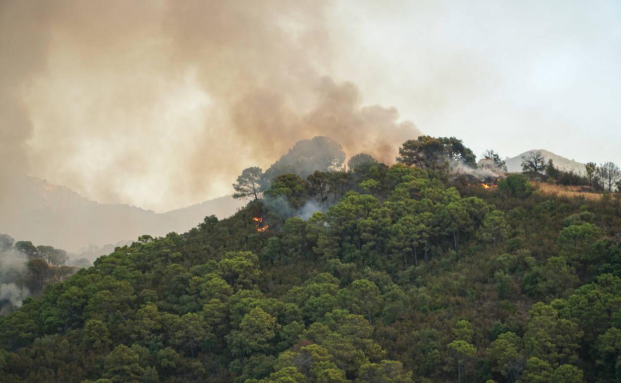 El fuego que se extiende desde anoche entre los términos municipales de Estepona, Jubrique y Genalguacil se ha ido complicando precisamente por el viento cambiante que reinó en la zona durante la noche y la madrugada, con rachas que alcanzaron los 45 kilómetros por ahora.