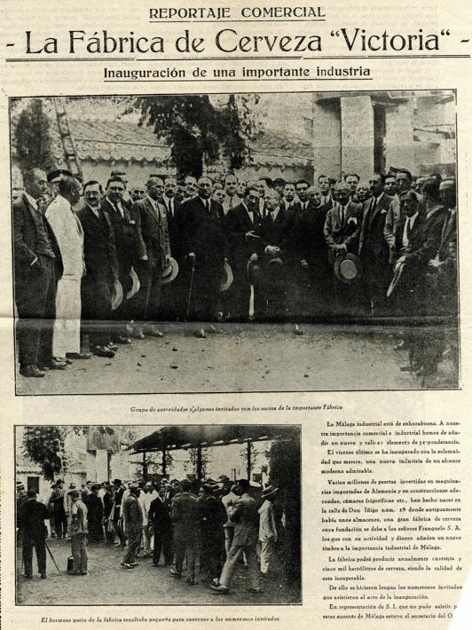 La inauguración de la fábrica se produjo el viernes 8 de septiembre de 1928, haciendo coincidir la fecha con el día de la Virgen de la Victoria. Al acto asistieron las más altas personalidades del momento: los gobernadores civil y militar, el alcalde Fernando Guerrero Strachan, el presidente de la Diputación y otros personajes ilustres de la sociedad malagueña como José Gálvez Ginachero. Durante el acto los invitados probaron la nueva cerveza y fueron obsequiados con un lunch de la casa Anglada y Jiménez.
