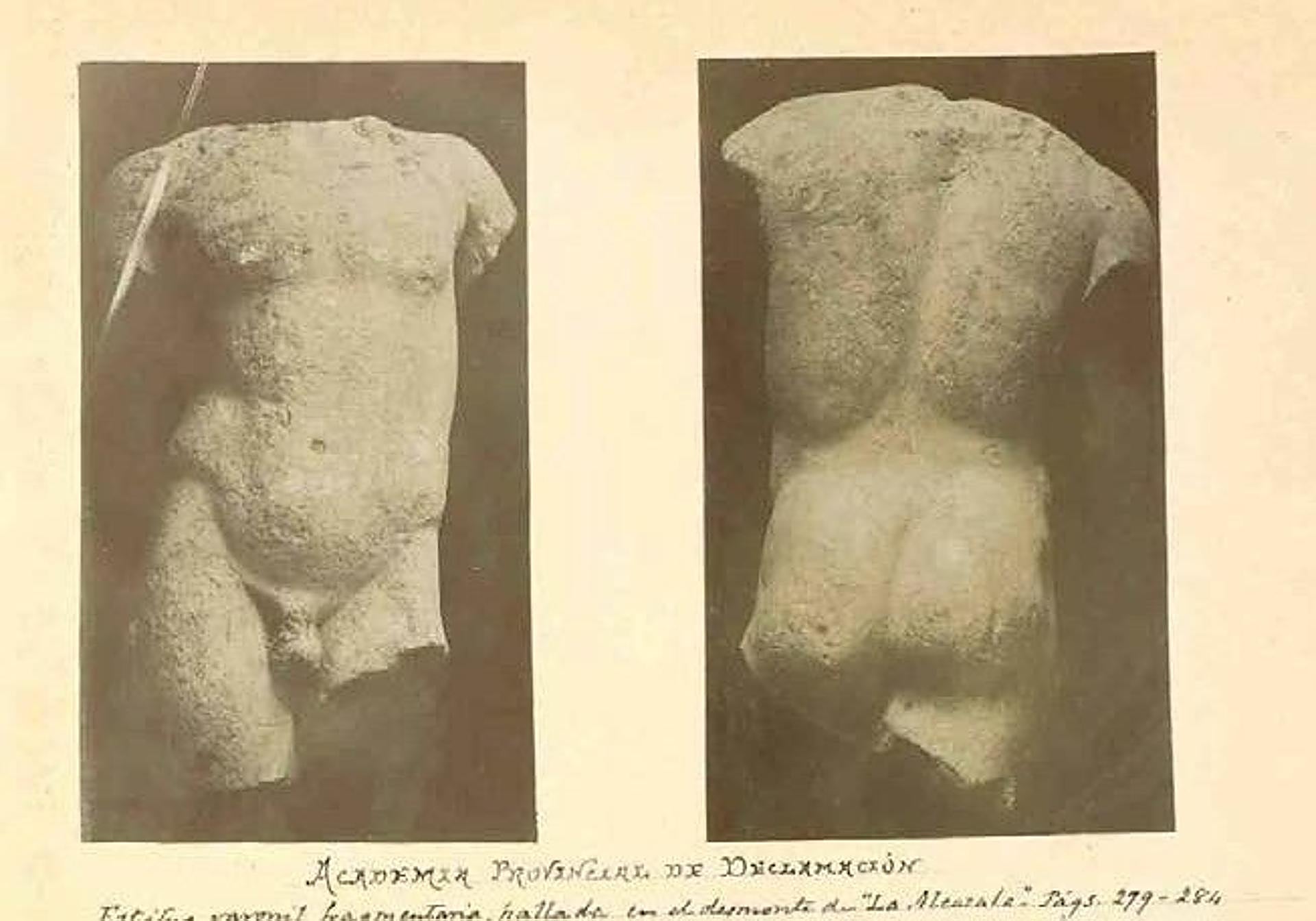 Enrique Fernández Sotelo visitó el local de la Academia en 1907 y quedó gratamente sorprendido, hasta el punto de enviar una descripción a la Real Academia de la Historia. «De museos nadie me habló y creí firmemente que no existían en Málaga, cuando al visitar una noche las clases de la Real Academia de Declamación y Buenas Letras, pude apercibirme de que existe allí un Gabinete Arqueológico, que puede ser principio del que Málaga necesita». Una de las piezas más destacadas era el torso de una escultura masculina que posteriormente ha sido identificada como representación de Dionisos, que fue estudiada por Amador de los Ríos y Schulten y que después se perdió. A los hallazgos de la Alcazaba se sumaron algunos objetos procedentes de una necrópolis localizada en Almargen en 1905 y de la cueva descubierta en El Romeral, en Antequera, por los hermanos Viera. El monetario estaba compuesto por unos 12.000 ejemplares.