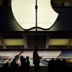 Vista de las siluetas de varios clientes en una tienda de la firma Apple en Sídney, Australia.