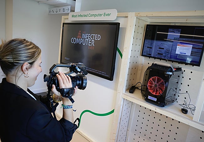 En el GSEC Málaga presumen de custodiar un objeto único: el «ordenador más infectado del mundo». Es un PC que los expertos de Virustotal infectaron a conciencia por una buena causa: un proyecto didáctico que exhibieron hace unos meses en el DES, con el fin de informar y concienciar sobre cómo funcionan las diferentes clases de 'malware'. El PC tiene treinta clases diferentes de 'malware' ejecutándose al mismo tiempo en memoria, desde un virus clásico de los 80 hasta un gusano, un troyano bancario, un 'fake antivirus', un 'exploit' o un 'adware'. Además, tiene más de 6 millones de 'malware' latentes en el sistema esperando ser activados.