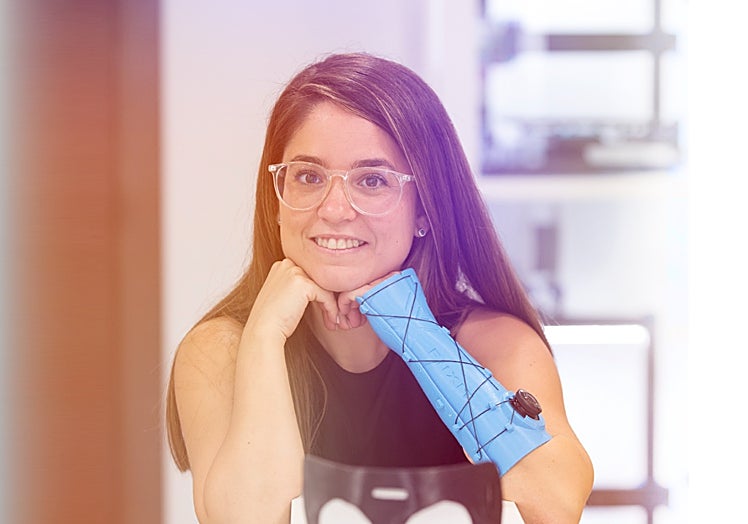 Ella: Raquel Serrano sólo tenía 25 años (ahora tiene 31) cuando fundó Fiixit, pero ya entonces llevaba algunos años con la idea de montar una empresa. «Cuando terminé la carrera de Ingeniería de Diseño Industrial no conseguía ningún trabajo de lo que había estudiado. Empecé a acudir a ferias de emprendimiento motivada por mis padres. Me dieron la idea de ofrecerme como estudio de ingeniería, en vez de como ingeniera, empezaron a salirme bastantes trabajos y después se me ocurrió la idea de hacer las férulas en 3D», cuenta.