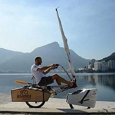 Un arquitecto brasileño crea una bicicleta adaptada con flotadores, hélices y velas con el fin de concienciar sobre las nuevas formas de movilidad urbana