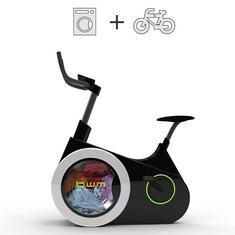 La bicicleta estática incorpora un tambor de lavadora en la que se puede introducir la ropa sucia y junto con agua y detergente se puede convertir en ropa limpia.
