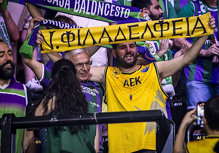 Precisamente, la afición del AEK fue lo que marcó la diferencia por completo durante la Final Four. Los aficionados malagueños quedaron impactados por la intensidad de los hinchas griegos, incansables en el apoyo de su equipo. Algunos de los cajistas desplazados a Atenas reconocían haber «conocido el baloncesto de verdad». Fue sintomático, que el sector donde se ubicaba la afición del Unicaja quedó 'hermanado' con los griegos, que quedaron encantados con el apoyo de los malagueños y el ritmo de la banda de 'Los Mihitas', aunque en el Unicaja-AEK hubo sus más y sus menos.