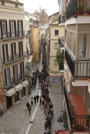 Solo el reflejo de los ojos acuosos y cierta rendición en los párpados anuncian el madrugón que se acaban de pegar. Se han levantado ... al filo de las cuatro de la madrugada y llevan allí desde las seis y media. Son los primeros. No es para menos. Han venido desde Torremolinos y aguardan con paciencia y buen ánimo frente al señorial portalón del palacio de Villalón. Carlos Ismael Serrato y Eva María Lara inauguran una cola que se pierde en el horizonte de la calle Compañía y frisa la escalinata bautizada con uno de los nombres más poéticos de la ciudad: la Tribuna de los Pobres.