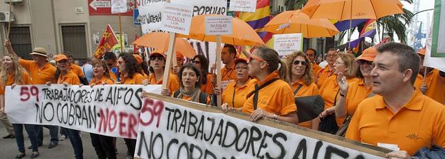 Trabajadores de varias empresas inmersas en conflictos laborales y de colectivos afectados por los recortes se dieron cita en el centro de la capital con camisetas, pancartas y originales sombreros reivindicativos. Entre ellos, empleados de Aifos, en concurso de acreedores, que denuncian que llevan dos meses sin cobrar; y trabajadores de los parques eólicos de Campillos que reclaman a Gamesa la readmisión de 14 compañeros. También se oyeron los gritos de transportistas y de empleados de Aena en contra de la privatización.