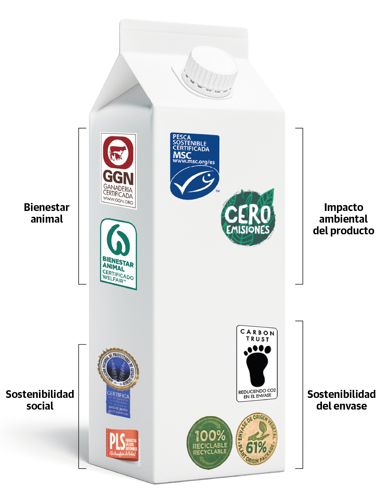 Bienestar animal, cuidado medioambiental, precio justo, origen vegetal, cero emisiones, carbono compensado... Hay productos con tantos sellos y certificados estampados en su envase que casi ... lo último que se ve es lo que estamos comprando. Un estudio realizado por la consultora Kantar constata que este tipo de etiquetas y alegaciones de toda clase que aparecen en los alimentos se han triplicado en los últimos cinco años. «Y con información de todo tipo, desde los que presumen del uso de embalajes reciclables a los que resaltan la acción social de la empresa. Ni que decir tiene que no todas son igual de fiables», alertan en la Organización de Consumidores y Usuarios (OCU).