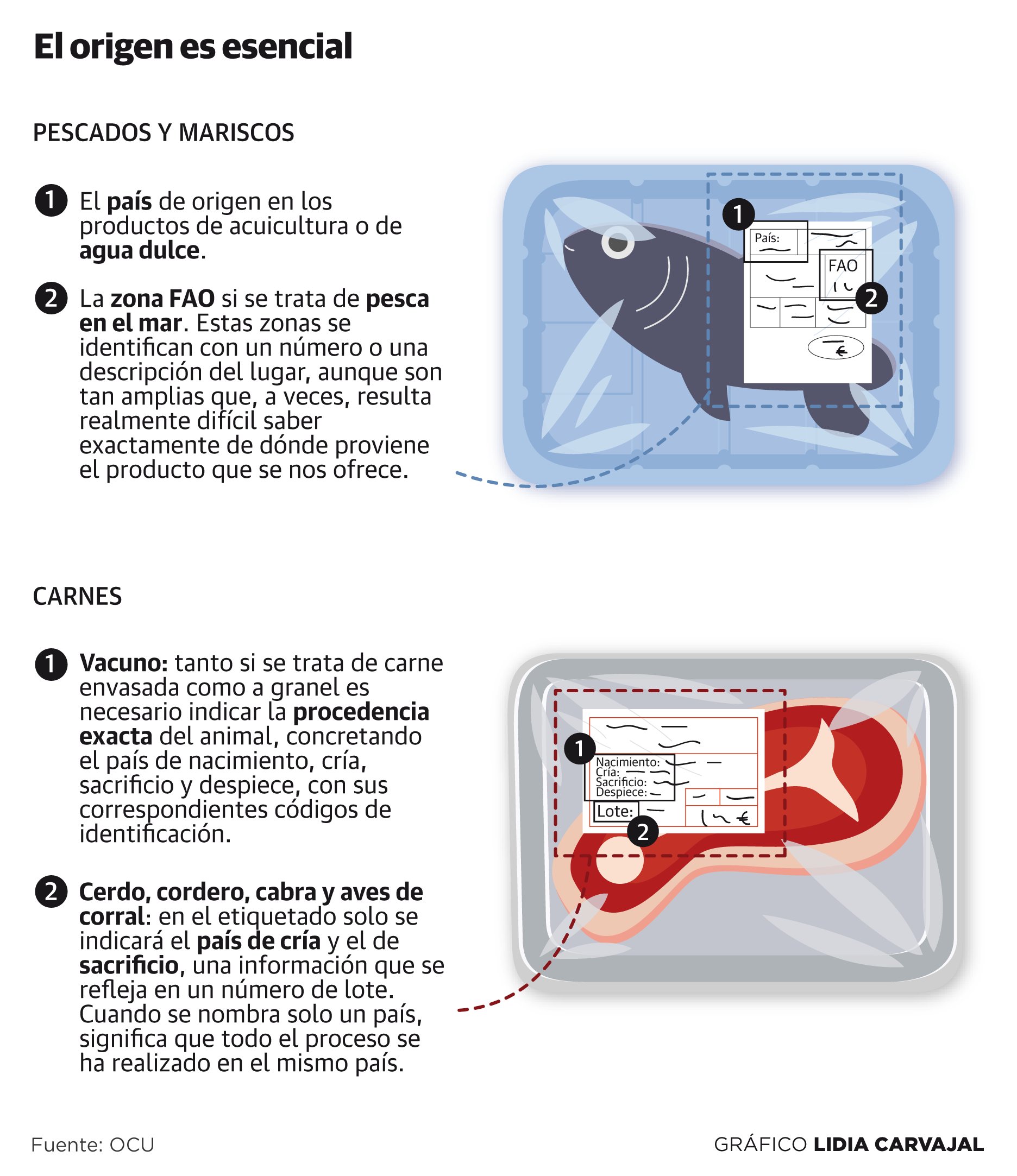 Conocer dónde y cómo se producen los alimentos es una preocupación cada vez más frecuente entre los consumidores, pero ¿sabría decir de dónde procede la ... merluza que va a cenar esta noche o la manzana que se tomará de postre? Es más, ¿sería capaz de entender el etiquetado en el que se precisa el origen de cada producto? «Pues es posible que la ternera, las naranjas o las uvas que se está tomando estos días lleguen de sitios tan lejanos como Sudáfrica o Nueva Zelanda pese a que en nuestro país son ahora mismo productos de temporada», advierten en la Organización de Consumidores y Usuarios (OCU).