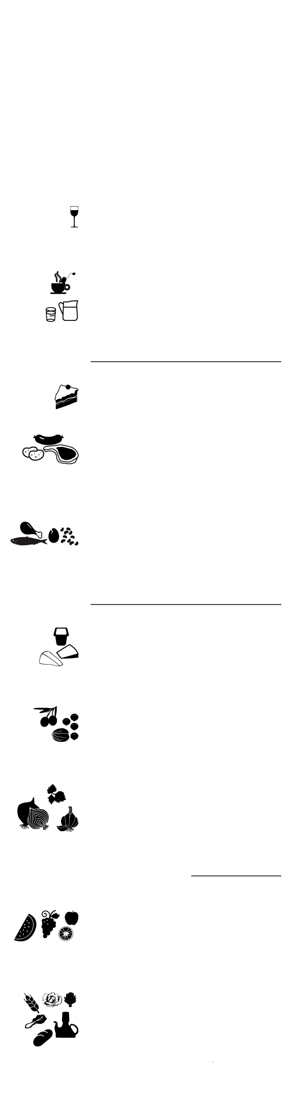 La ingesta diaria de agua debe ser de 1,5-2 litros (6 u 8 vasos) y el consumo, moderado. Además, hace recomendaciones específicas en la elección de los productos, como decantarse por cereales integrales, por lácteos bajos en grasa o por tomar las frutas y verduras preferiblemente cocidas o crudas. También se aconseja comprar productos locales, estacionales y respetuosos con el medio ambiente, así como realizar actividad física diaria y descansar adecuadamente.