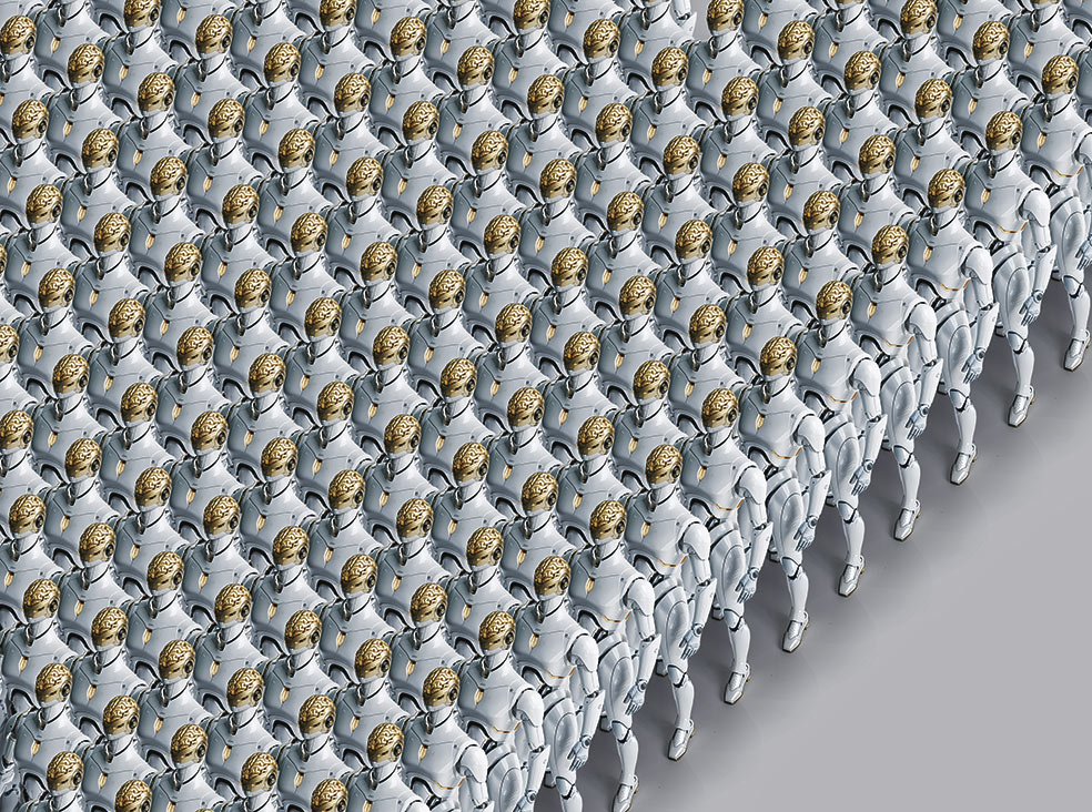 XL. No lo entiendo. Un robot con inteligencia artificial no puede llevarse una taza de café a la boca diez mil veces más rápido solo porque existan diez mil copias idénticas de él.