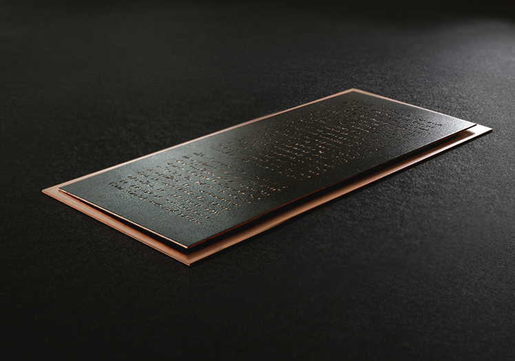 Enfrente de esa suerte de mural de papel ha realizado la obra en exclusiva para los Premios XLSemanal. En una plancha de cobre, «igual que las que utilizaba Goya para sus grabados», escribió con una punta de grabado un breve texto incluido en el libro Claros de bosque, de María Zambrano.