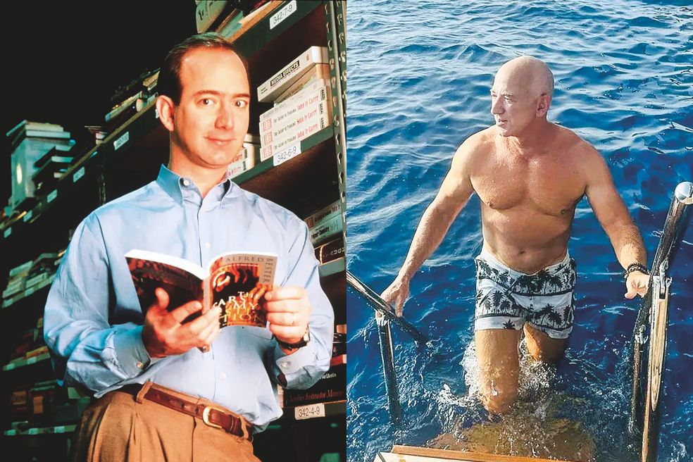 El cuerpo de Bezos se ha ido inflando al mismo ritmo que su bolsillo. El nerd que posaba en 1997 con el negocio inicial de Amazon, la distribución de libros, se ha convertido en un gym bro. Mientras, su novia sube fotos de él a redes para elogiar su figura: «¿Soy solo yo o hace calor ahí fuera?», escribe Lauren junto a la imagen en la escalera del yate.