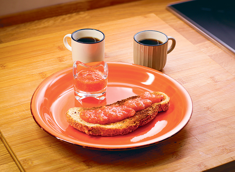 «Un café bien cargado y sin leche. Un par de rebanadas de pan tostado, con aceite de oliva virgen extra, tomate picado y, a veces, jamón de bellota. Y otro café».